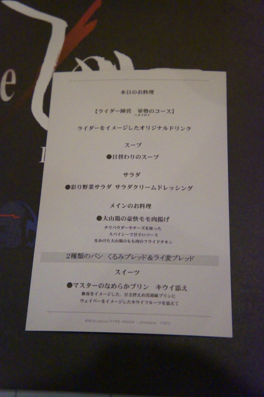 予約を取るのがちょっと面倒&意外に人気で埋まっちゃうのですがFate/Zeroファンであれば一度は行ってみることをオススメしますよー。