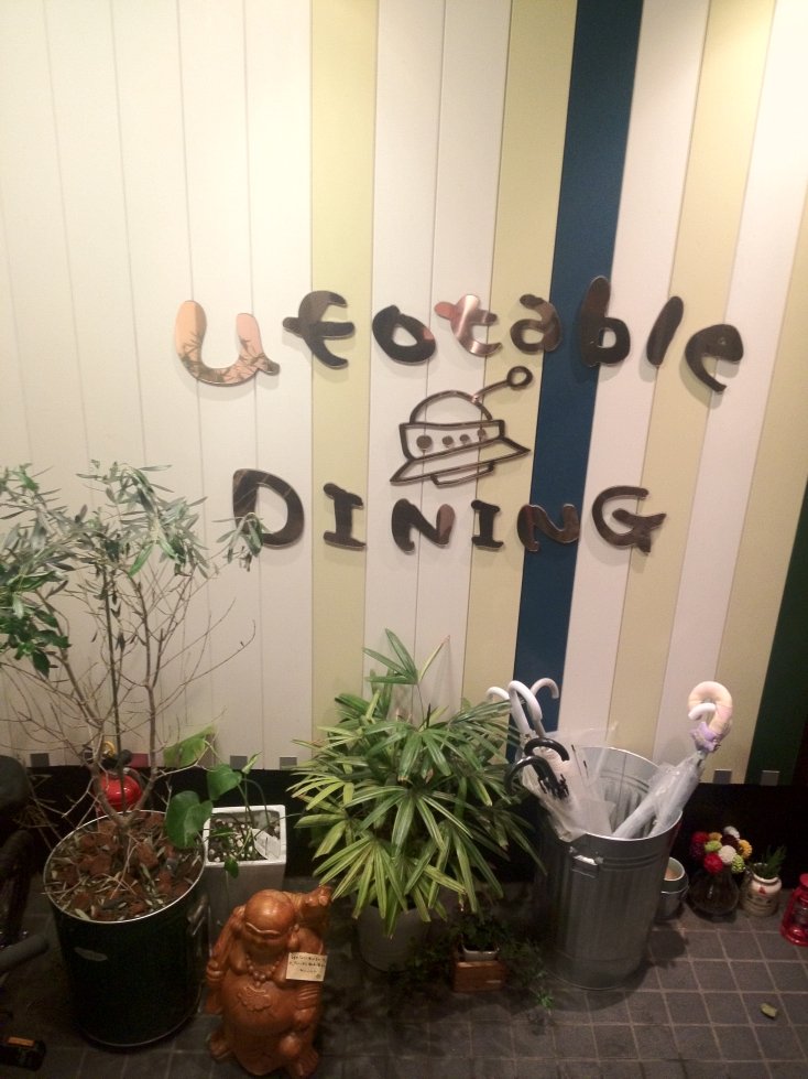 お店は地下にあるのですが階段を降りるとUFOの絵とともに迎えてくれます(笑)