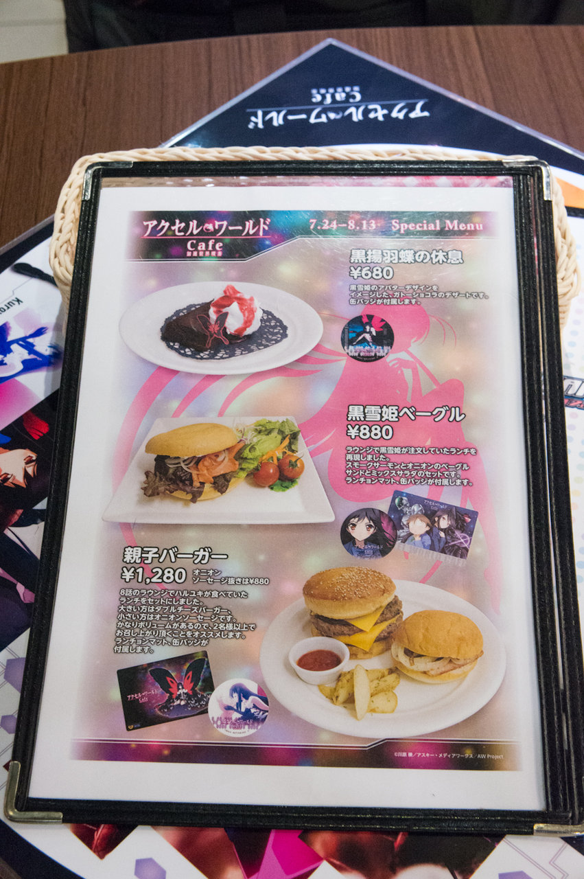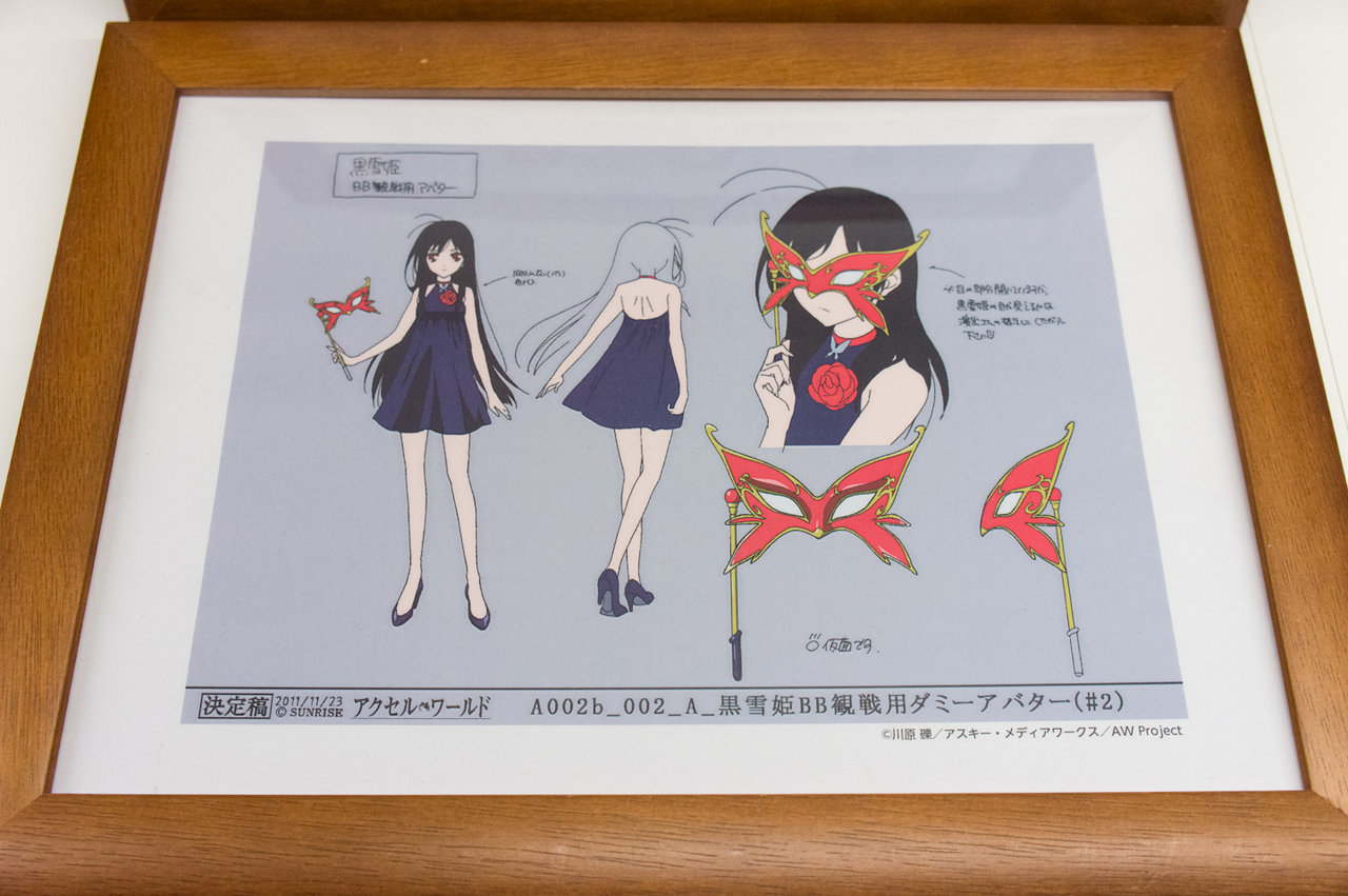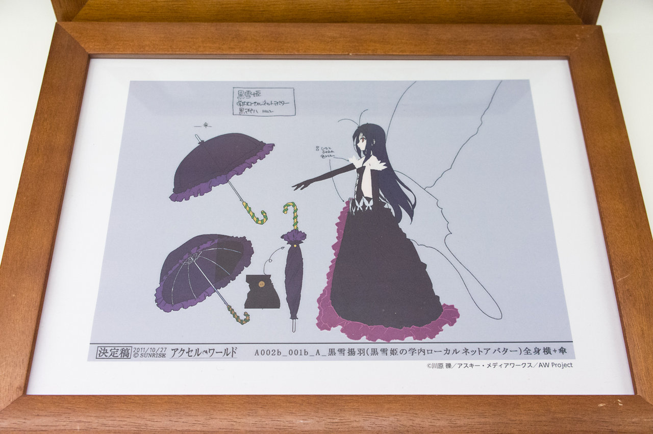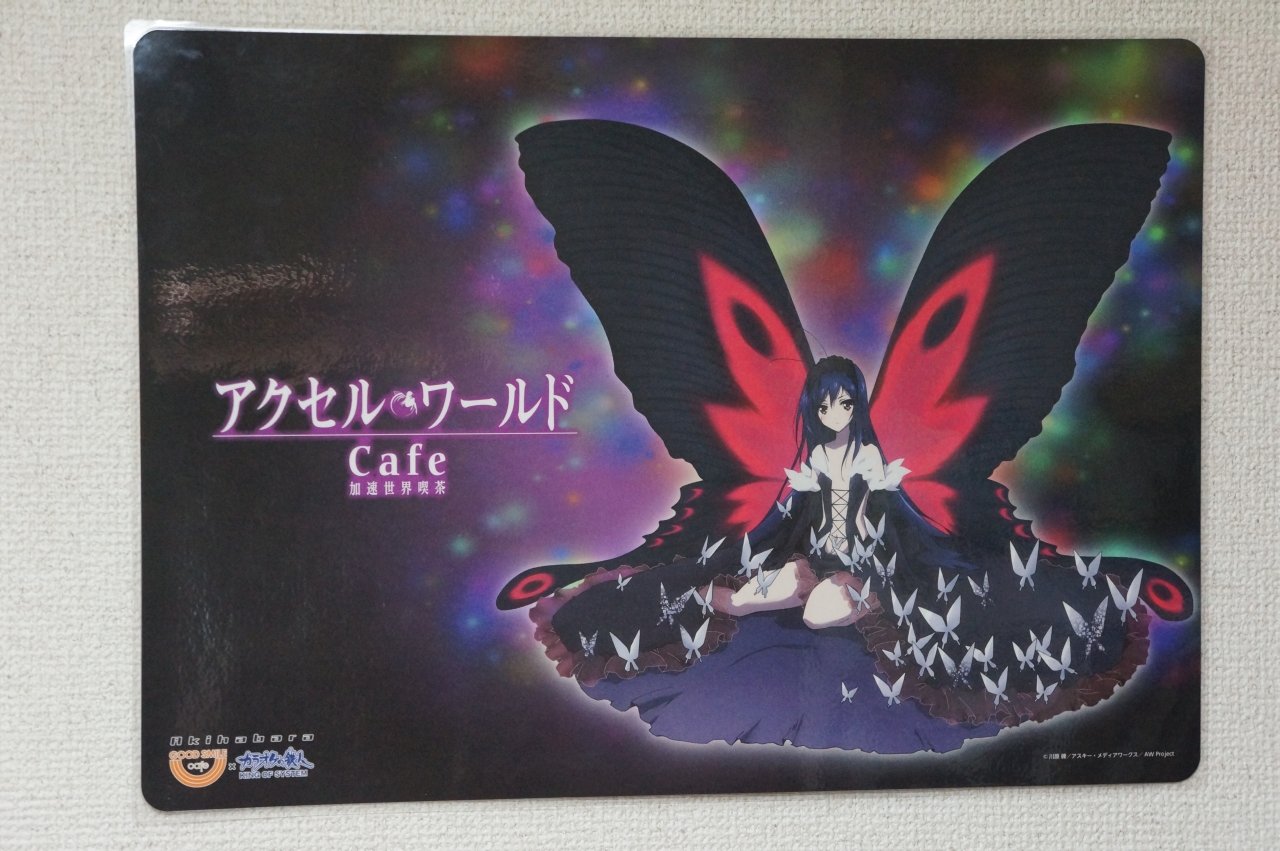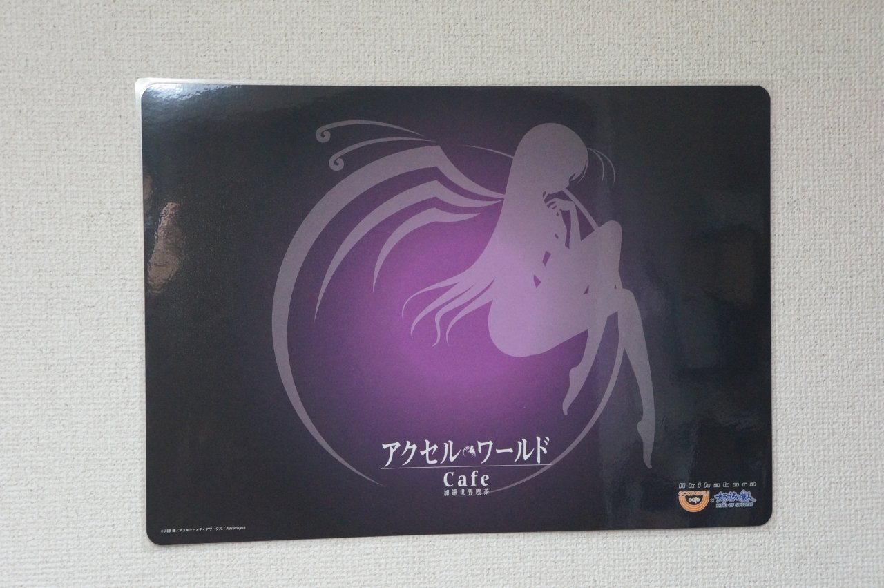 と、こんな感じになっています。最近のグッ鉄カフェのコラボ時の展示アイテムは設定資料集とタペストリーが定番になってきましたね(^^; フィギュア系が全く無いので、figmaやらねんどろいどの黒雪姫などがワンフェスが終わったら展示されるのではないかと予想しています。