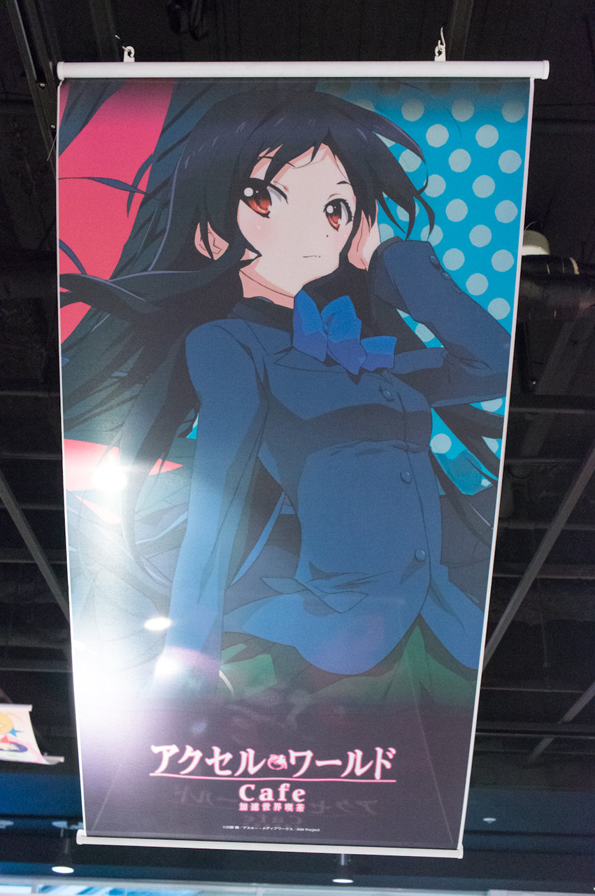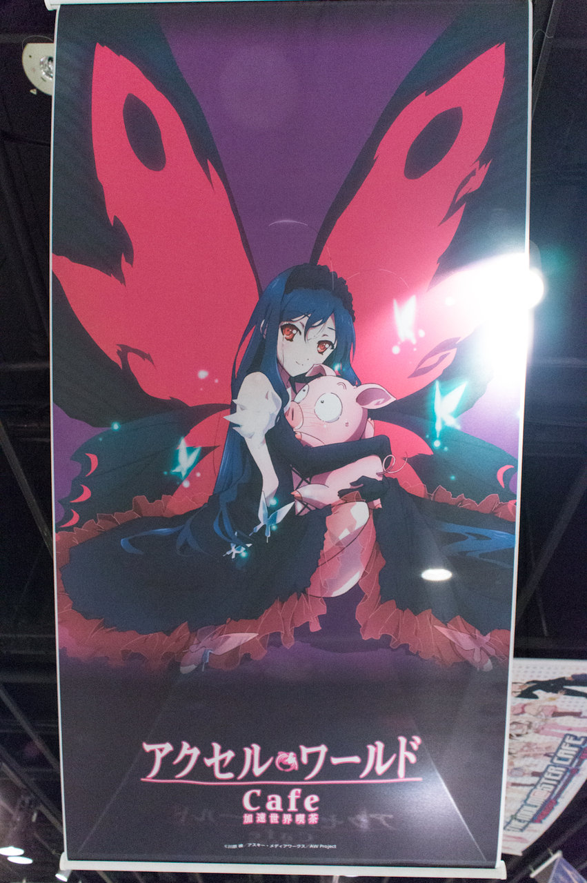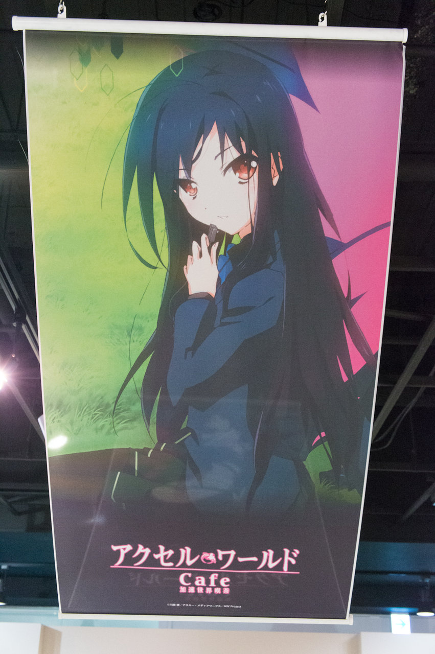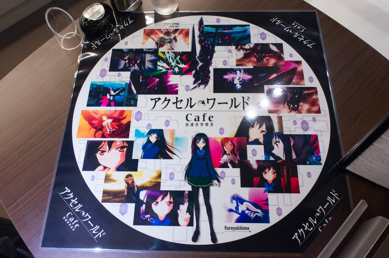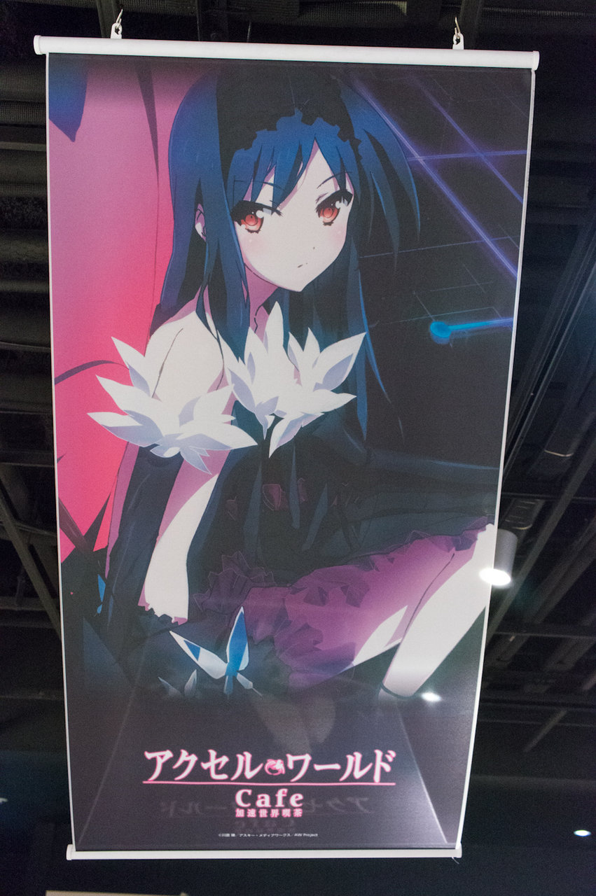 と、こんな感じになっています。最近のグッ鉄カフェのコラボ時の展示アイテムは設定資料集とタペストリーが定番になってきましたね(^^; フィギュア系が全く無いので、figmaやらねんどろいどの黒雪姫などがワンフェスが終わったら展示されるのではないかと予想しています。